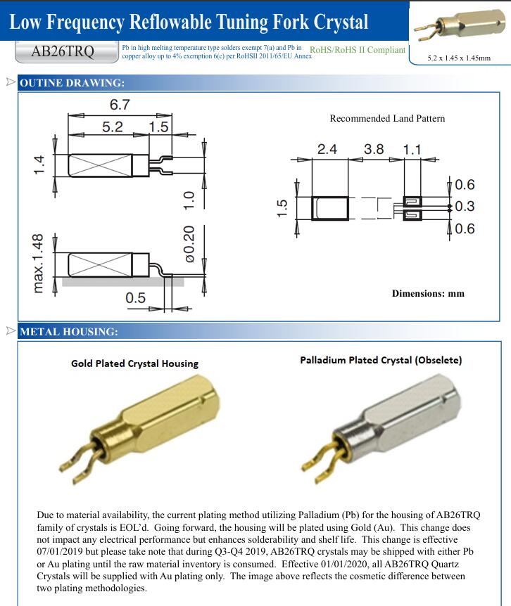 以微末革新,筑品質根基在電子產業的精密世界里,AB26TRQ系列Abracon晶振雖身形微小,卻堪稱諸多電子設備的“時間心臟”.美國艾博康ABRACON公司將AB26TRQ-32.768KHZ-T其外殼電鍍工藝從鈀改為金的決策,看似只是材料的細微更替,實則彰顯了制造業“于細微處見真章”的品質追求,更印證了:真正的進步,往往藏在對細節的持續優化之中.