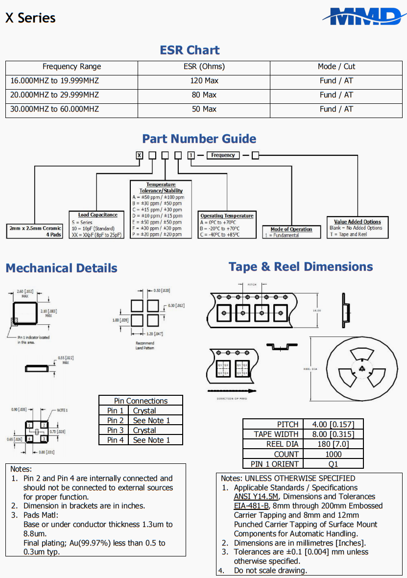 X系列2520晶體,MMD抬頭顯示模塊晶振,X10PB1-19.200MHZ-T美國進口晶振,美國MMD晶振公司,D系列晶振,2520晶振,X10PB1-19.200MHZ-T晶振,貼片晶振,石英晶振,歐美晶振,超小型晶振,四腳晶振,超小型晶振,高精度晶振,汽車晶振, 耐高溫晶振,無源晶振,液晶儀表盤晶振,進口晶振,歐美晶振,超小型晶振,電腦主板晶振,無源晶振,顯示器晶振,環保無鉛晶振,MMD晶振。2mm x 2.5mm 4襯墊陶瓷包裝,超微型輪廓,符合RoHS標準,磁帶和卷軸包裝。
