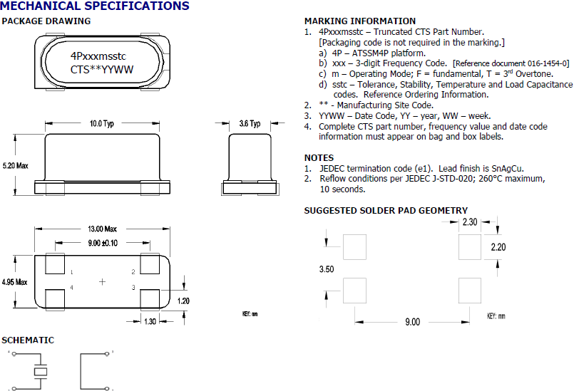 CTS晶振,貼片晶振,ATS-ATSSM4P晶振,歐美無源晶振普通貼片石英晶振外觀使用金屬材料封裝的,具有高穩定性,高可靠性的石英晶體諧振器,晶振外觀本身使用金屬封裝,充分的密封性能,可確保其高可靠性,采用編帶包裝,外包裝采用朔膠盤,可在自動貼片機上對應自動貼裝等優勢。