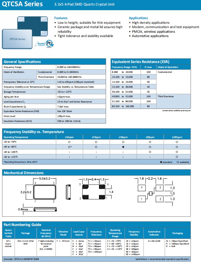 Quarztechnik進(jìn)口晶振,QTC5A通信設(shè)備晶振,QTC5A12.0000FBT3I30R晶振