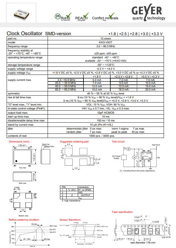 產品信息: GEYER 電子 KXO-V93T 32.768 kHz 振蕩器