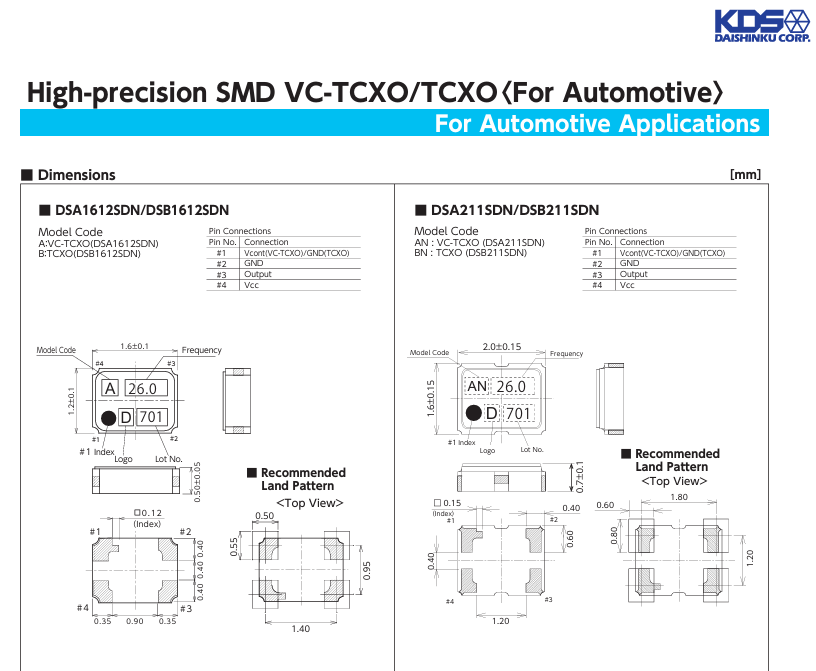 1XXH26000MCB溫補晶振,DSB1612SDN日本晶振,KDS大真空晶振聲表面諧振器