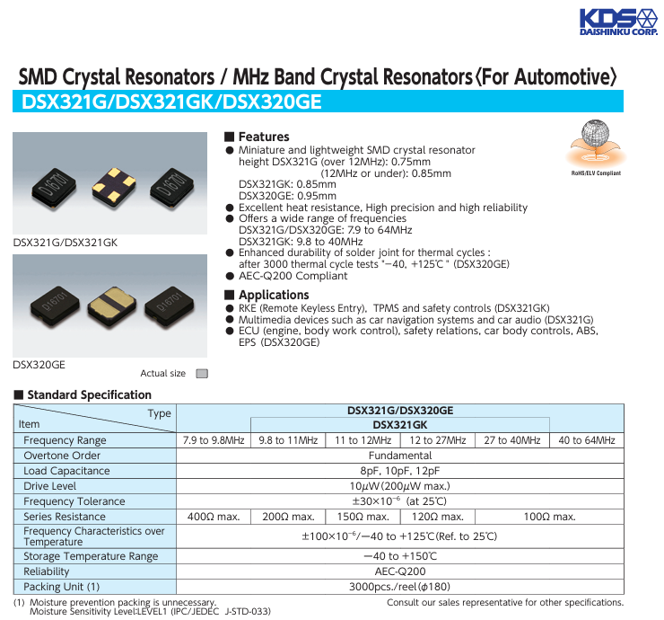 更多>>KDS車規(guī)級陶瓷晶振7AD02400A38 DSX321G 24M