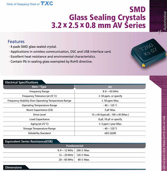 在電子設備的精密世界里,晶振如同“心臟”,為各類電路提供穩定的頻率參考.臺灣晶技(TXC)推出的AV20000003無源晶振,以卓越性能與環保理念,成為科技領域的亮眼明珠,彰顯著匠心與創新的力量.