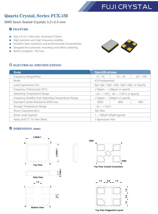 日本Fuji Crystal晶振,FCX-3M車規晶振,寬溫晶振