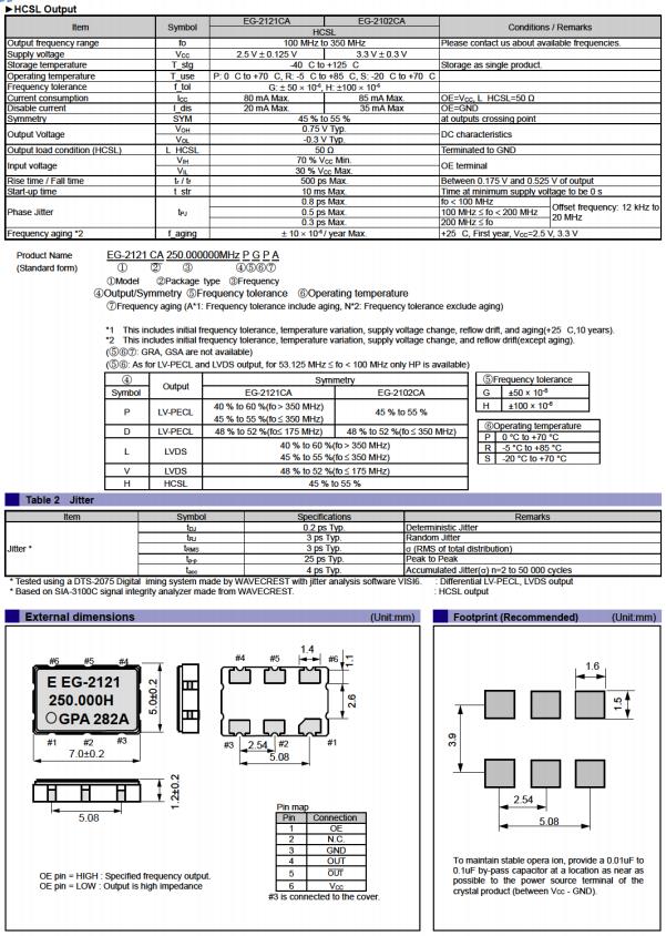 | Q3805CA10003600 | EG-2121CA | 100.000000 MHz | 7.00 x 5.00 x 1.20 mm | LVDS | 2.375 to 2.625 V | 0 to 70 °C |