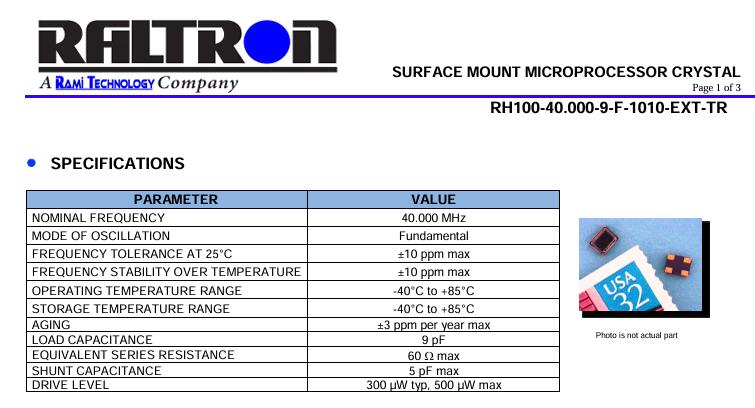 RH100-40.000-9-F-1010-EXT-TR玩具石英晶振,通信晶振,物聯網晶振