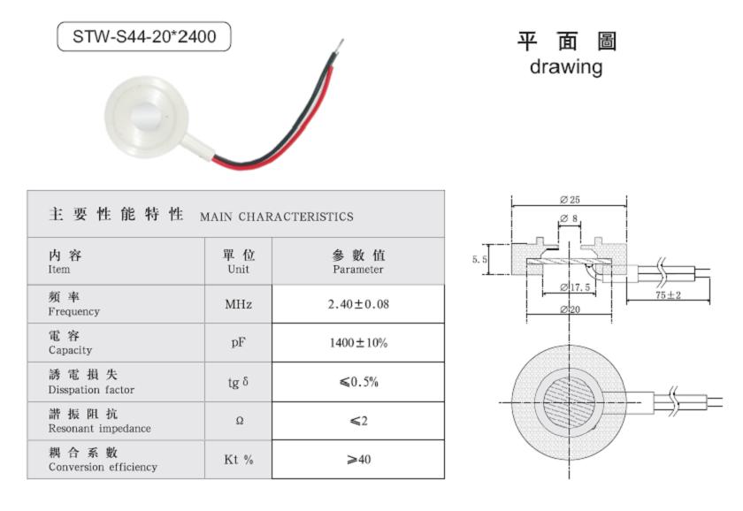 諧振頻率:1.70MHz2.4MHZ