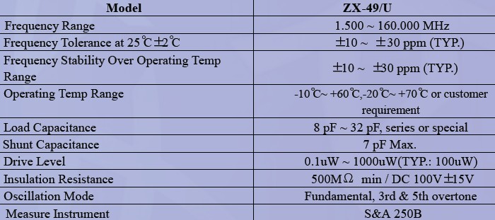 • 首頁國產晶振石英晶振,石英晶體諧振器,ZX-49U晶體