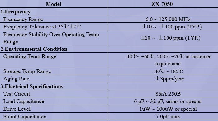 首頁國產晶振貼片晶振,石英晶振ZX-7050,石英晶體諧振器